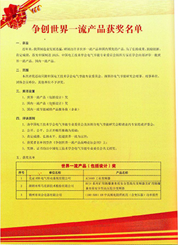 2015年11月27日由中國電工技術(shù)學會電氣節(jié)能專業(yè)委員會聯(lián)合中國歐洲經(jīng)濟技術(shù)合作協(xié)會共同主辦的 “爭創(chuàng)世界一流產(chǎn)品高峰論壇”會議在深圳召開。北京ABB電氣傳動系統(tǒng)有限公司ACS880系列工業(yè)變頻器和深圳市庫馬克新技術(shù)股份有限公司生產(chǎn)的BPJV系列礦用隔爆兼本質(zhì)安全型高壓變頻器及礦用隔爆兼本質(zhì)安全型高壓組合變頻器等。分別獲得世界一流產(chǎn)品(設(shè)計)獎。